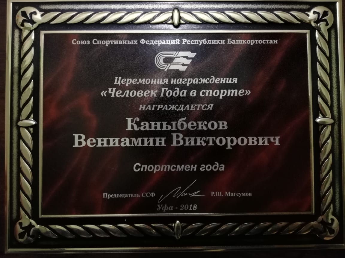 В декабре 2018 года Союзом Спортивных Федераций Республики Башкортостан магистр Каныбеков Вениамин был назван "Спортсменом года" в легкой атлетике.