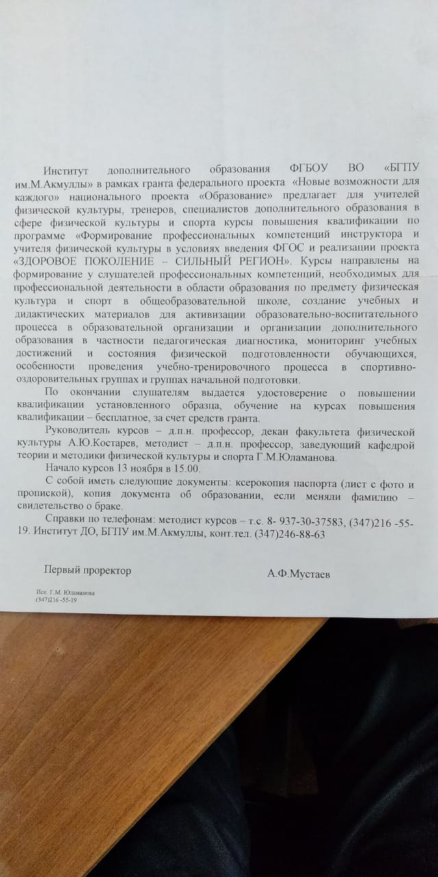 В рамках гранта федерального проекта «Новые возможности для каждого» национального проекта «Образование» кафедра теории и методики физической культуры и спорта факультета физической культуры проводит для учителей физической культуры, тренеров, специалистов дополнительного образования курсы повышения квалификации по программе «Формирование профессиональных компетенций инструктора и учителя физической культуры в условиях введения ФГОС и реализации проекта «ЗДОРОВОЕ ПОКОЛЕНИЕ – СИЛЬНЫЙ РЕГИОН»».