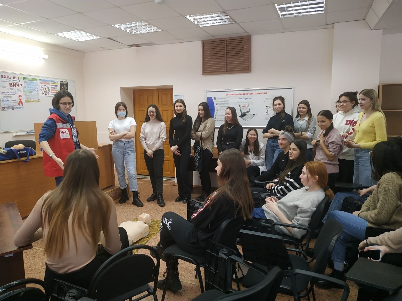19 марта Щебетовская Д.А. – заместитель председателя Регионального отделения Российского Красного Креста по Республике Башкортостан на базе кафедры Охраны здоровья и безопасности жизнедеятельности провела очередной курс по обучению навыкам оказания первой помощи в рамках проекта – победителя конкурса Фонда президентских грантов «Уроки спасения Красного Креста».