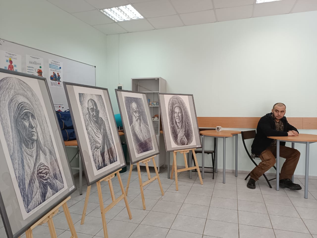В ходе беседы были затронуты темы любви, красоты, мужественности, осознанности и ответственности за свои поступки. Художник также рассказал о своём проекте "Дарение мира" и серии портретов "Миротворцы". На выставке представлены портреты истинных лидеров общественного мнения - Льва Толстого, Святой Матроны, матери Терезы Калькутской, Махатмы Ганди, а собирательный образ Наставника, по словам автора картин, является ориентиром для духовного развития каждого человека.
