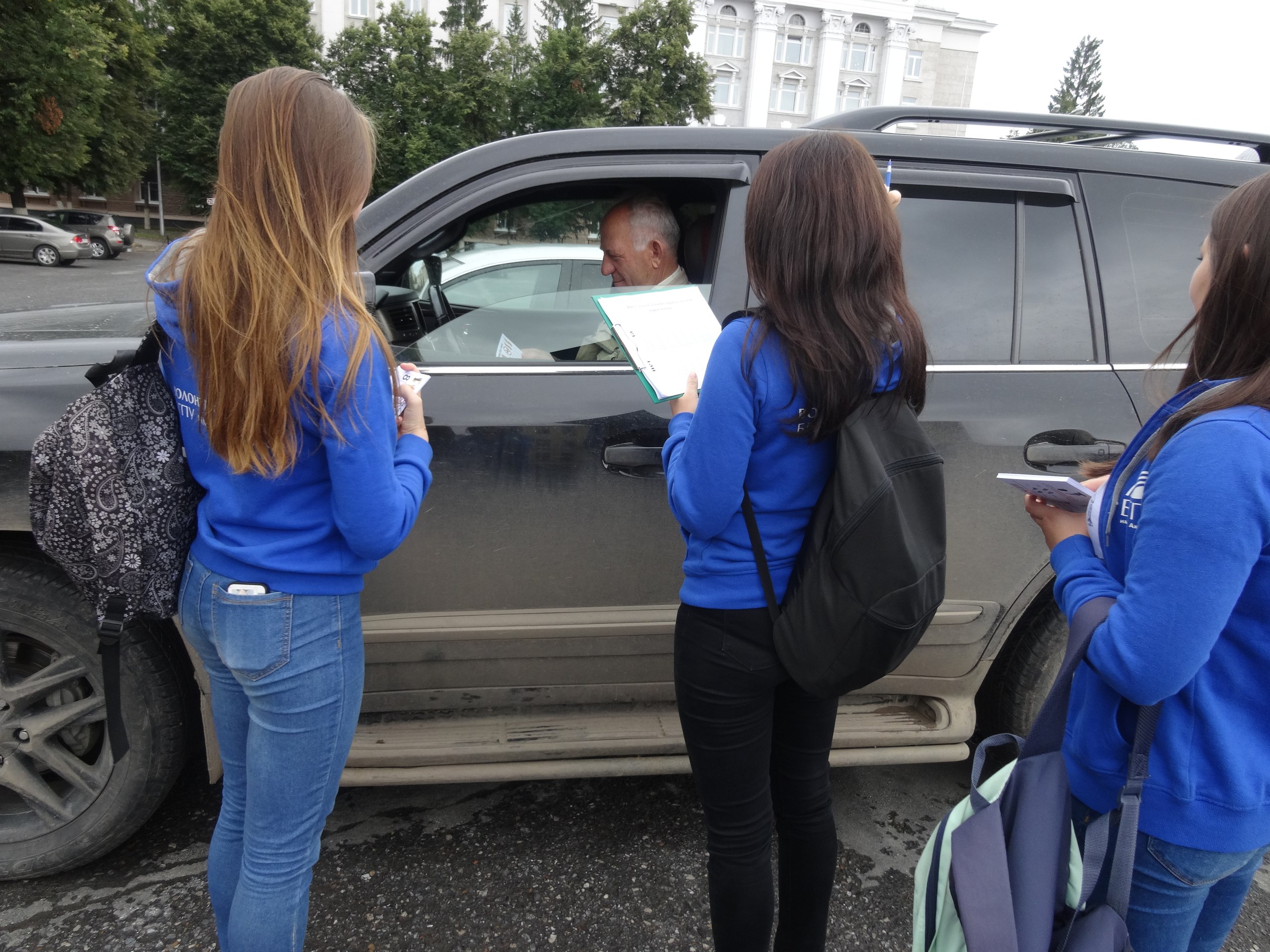 Волонтеры раздавали водителям парковочные визитки, на оборотной стороне которых был представлен алгоритм оказания первой помощи в ДТП.